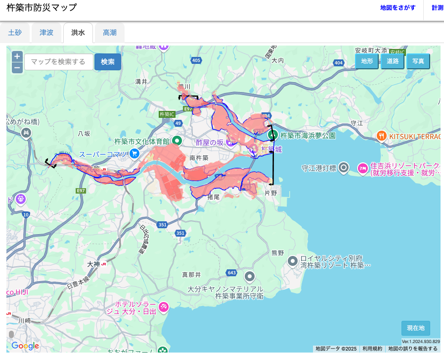 家賃の安さは大きな魅力ですが、居住エリアを決める際は 防災面も考慮することが大切 です。杵築市の 防災マップ を活用すれば、土砂災害・津波・洪水・高潮などの危険エリアを事前に確認できます。また、大分県災害データアーカイブ を参照することで、過去に杵築市で発生した災害の事例を知ることができます。
