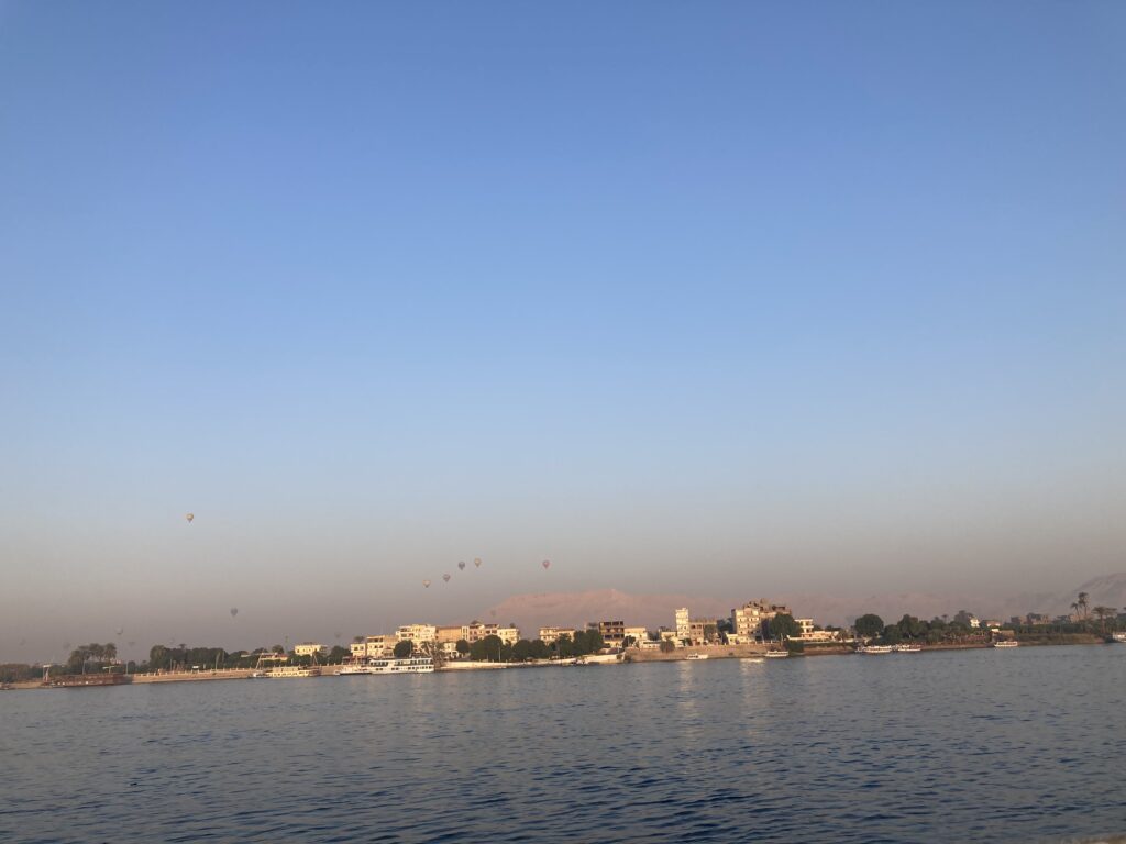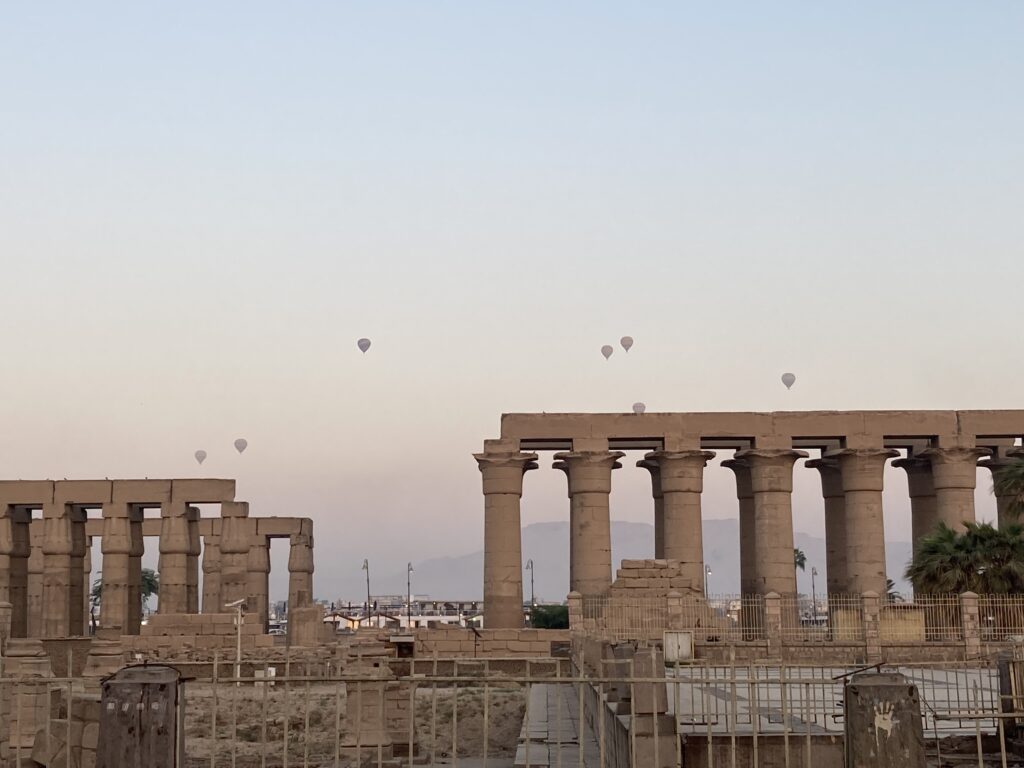 ルクソールでは熱気球ツアーが人気で、早朝は空にいくつもの気球が漂っています。私は高所が苦手なので参加しませんでしたが、興味がある人には魅力的なアクティビティです。