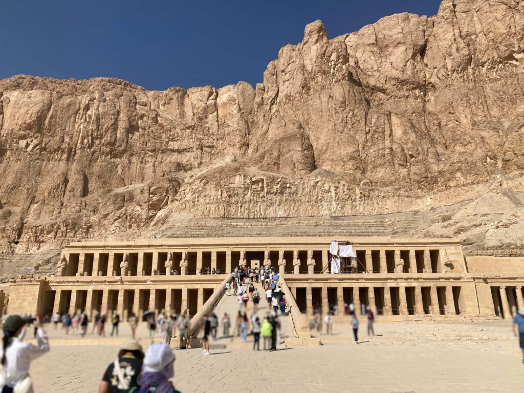▶︎ハトシェプスト葬祭殿の谷観光(約1時間) - ハトシェプスト葬祭殿(11:00) → メムノンの巨像(11:10)