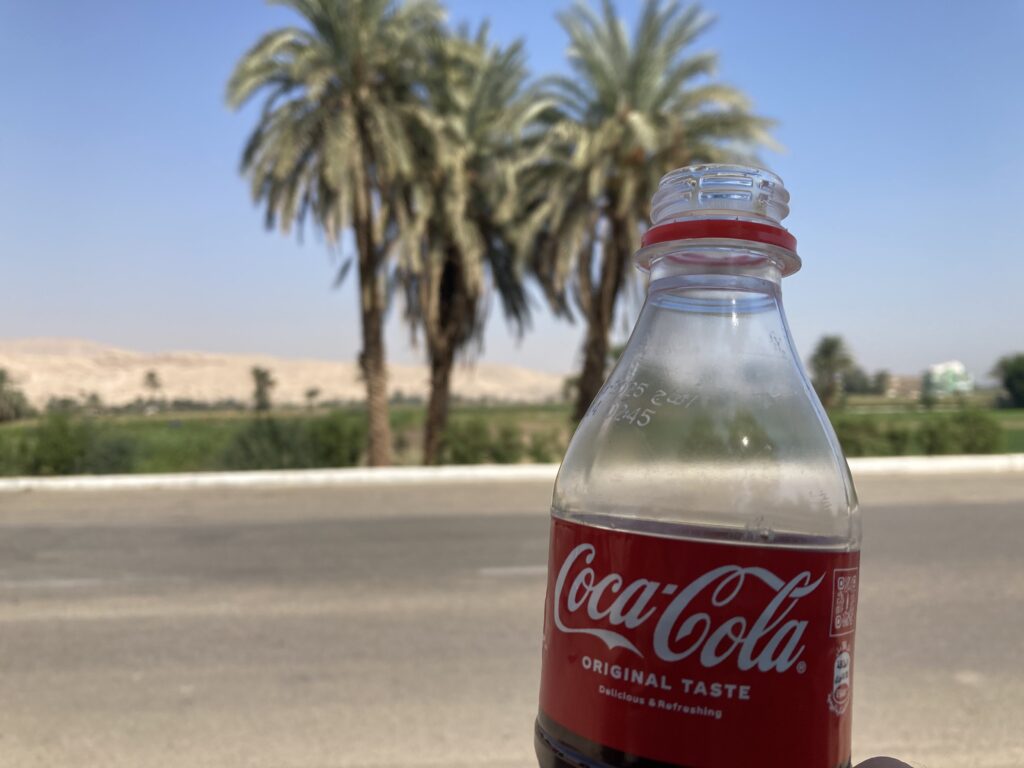 あまりの暑さに、私は売店で水とコーラを(25EGP/約80円)購入し、しっかり水分補給をしました。短い休憩を挟んだら、あとは返却場所のレンタル自転車店までラストスパートです。